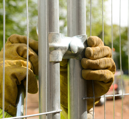 Fencing clips are used to connect temporary fencing panels together. Made from galvanised steel, they are durable and hard-wearing, meaning they can be used multiple times. Anti-tamper clips require an Anti-Tamper Clip Spanner to fasten and unfasten them as they feature a unique nut matching the spanner's key, making the fencing more resistant to unauthorised access. We recommend using two couplers to clip each fence together.
