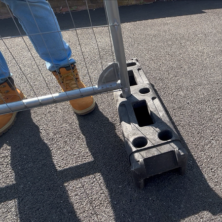 The round-top temporary fence set includes 1no. mesh fencing panel, 2no. fencing clips and 1no. rubber block.