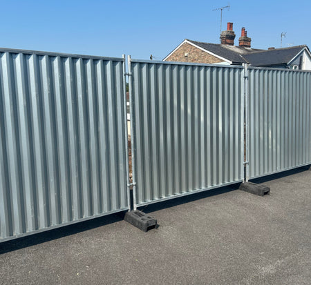 Manufactured from heavy-duty galvanised steel our site hoarding panels are designed to provide a fast, effective, and good-value temporary site perimeter wherever fencing is not suitable. Each panel is 2.15m wide and 2m tall and requires Fence Feet to stand or our anti-trip kits.